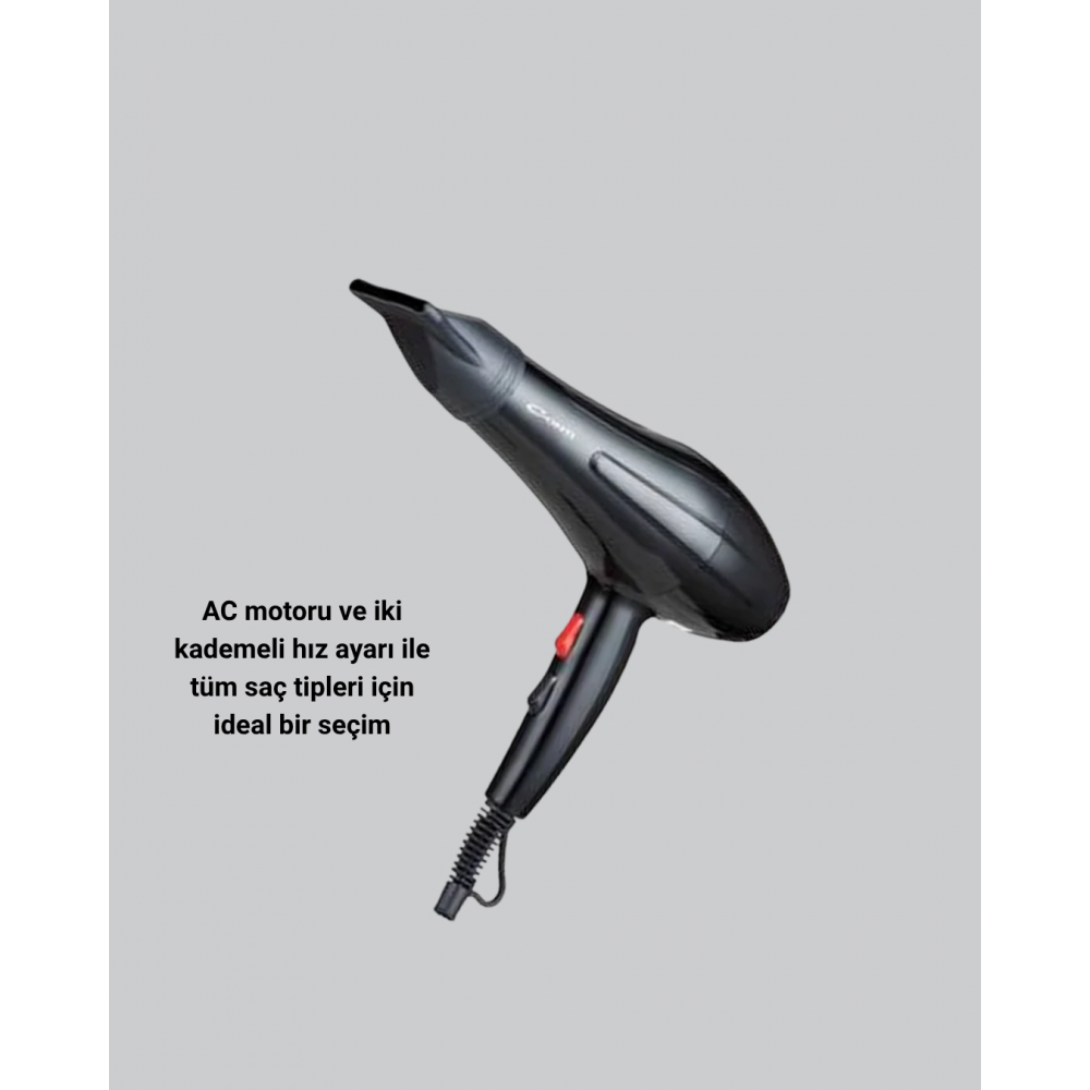 Salon kalitesinde performans artık evinizde!Bu 2200 Watt profesyonel fön makinesi, güçlü AC motoru sayesinde saçlarınızı kısa sürede kuruturken yıpranmayı en aza indirir.İki kademeli hız ve sıcaklık kontrolü, saç tipinize göre mükemmel uyum sağlar.İster yoğun sıcak hava ile hızlı kurutma, ister nazik rüzgarla şekillendirme yapın, sonuç her zaman profesyonel!Soğuk hava üfleme özelliği, saç şeklinizi sabitler ve elektriklenmeyi önler.Bu sayede saçlarınız gün boyu parlak ve pürüzsüz kalır.Dayanıklı AC motoru, uzun ömürlü kullanım sunarak profesyonel kuaförlerin tercih ettiği performansı sağlar.Hafif gövdesi ve ergonomik tutuşu ile elinizi yormadan uzun süre kullanabilirsiniz.Sadece ev kullanımı için değil, kuaför salonları, seyahatler veya çekim setleri için de mükemmel bir seçenektir.Taşınabilir ve kompakt tasarımı, çantanızda kolayca yer bulur.Kablo uzunluğu ve ısıya dayanıklı dış gövdesi, kullanım kolaylığını artırır.Şık görünümüyle banyonuza modern bir dokunuş katar.Güç, hız ve zarafet bir arada!Bu fön makinesiyle her gün kuaförden yeni çıkmış gibi hissedeceksiniz.