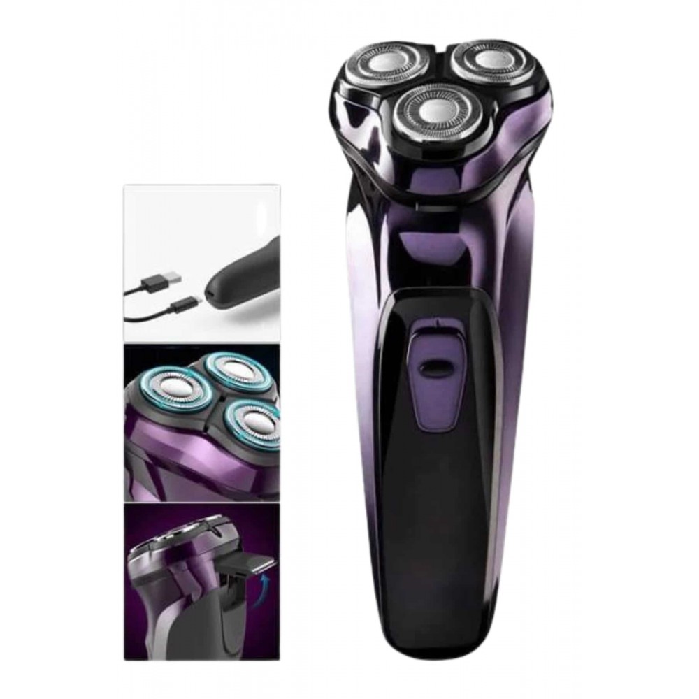 3 Bıçaklı Döner Başlıklı Sakal Sıfır Alma Tıraş Makinesi Profesyonel Paslanmaz Çelik