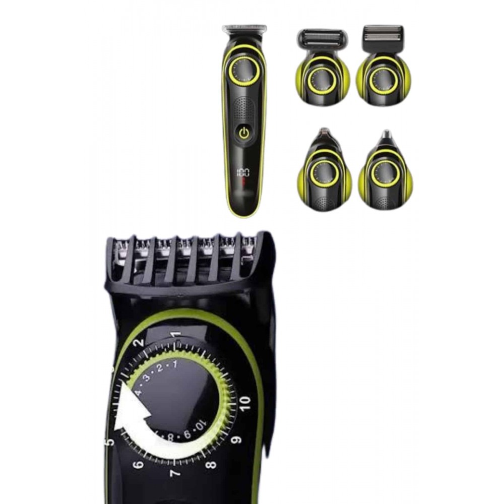 5 Başlıklı Şarjlı Tıraş Makinesi Led Ekran Saç Sakal Ense Tıraşına Uygun Bakım Seti