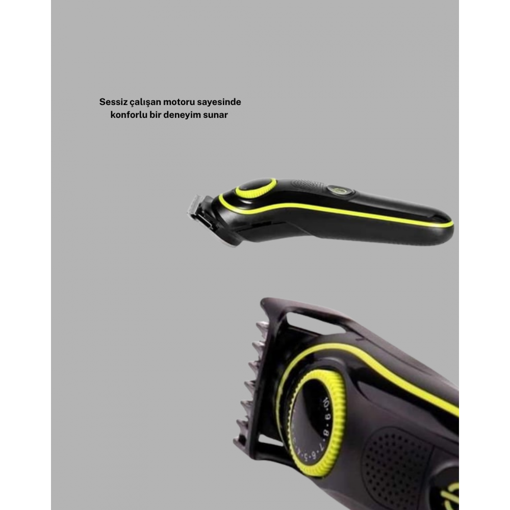 Bu saç sakal kesme makinesi, saç ve sakal kesiminde tam kontrol ve hassasiyet sağlar. Tam çelikten y..