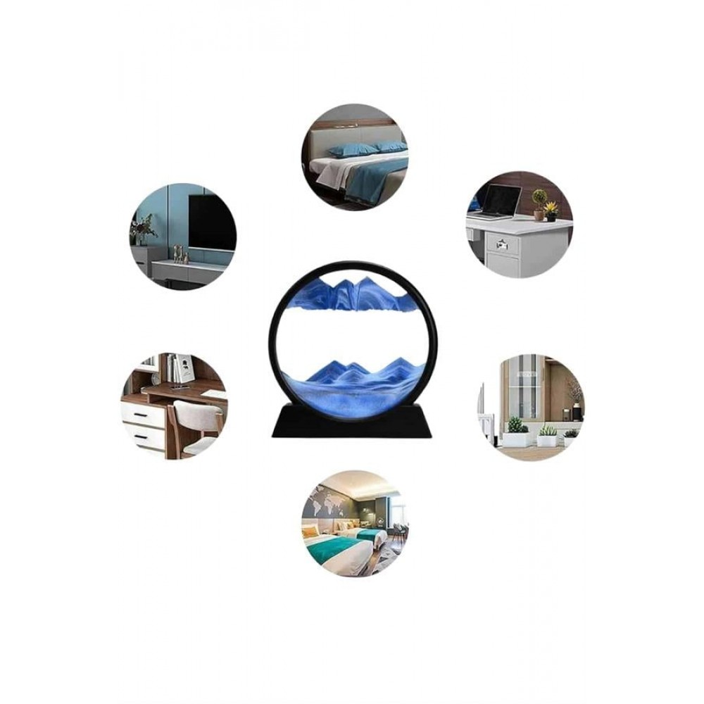 7 Inç Mavi Orta Boy Dekoratif Yuvarlak Şık Kum Tablosu Modern Dekoratif Süs