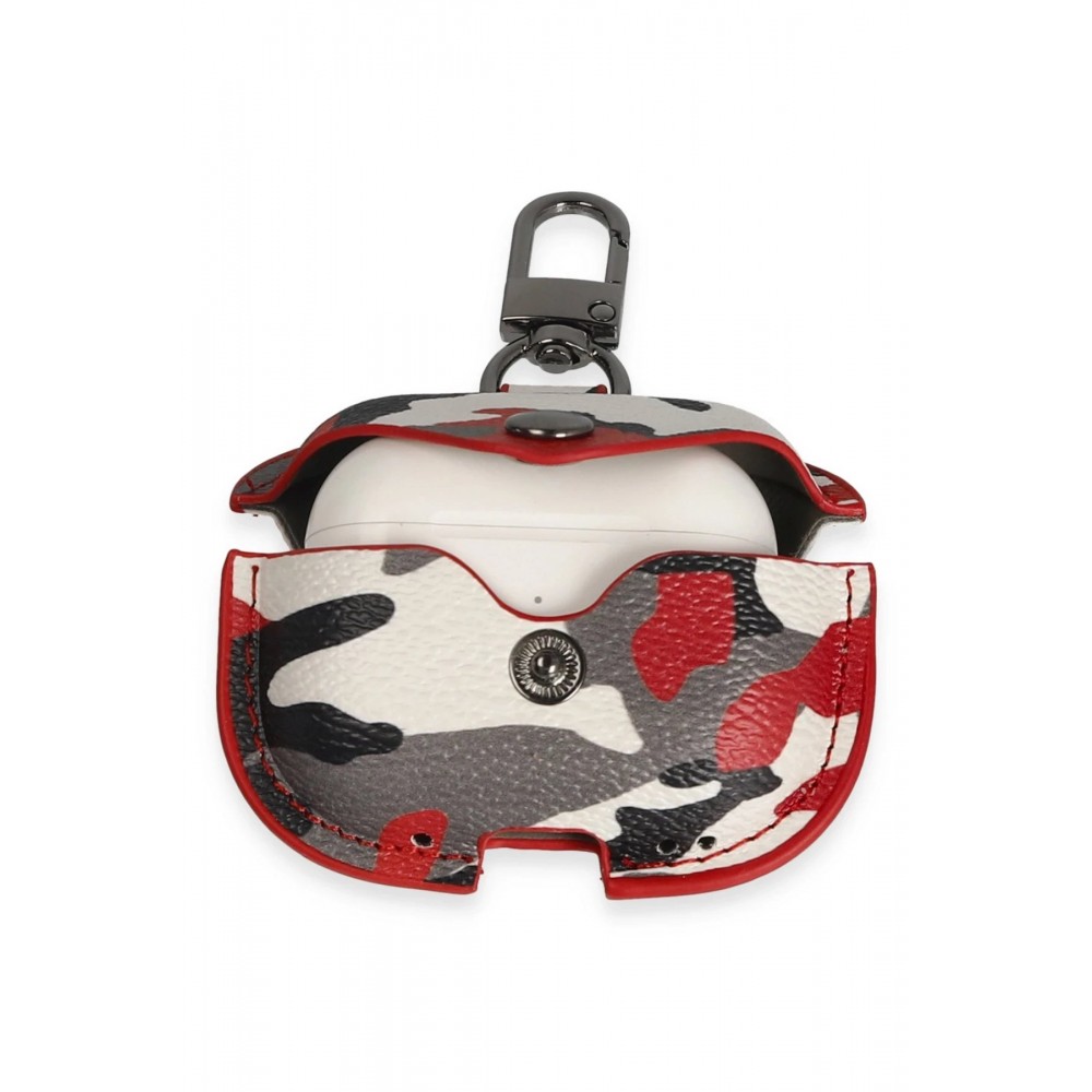 Airpods Pro 2 (2.nesil) Çanta Kamuflaj Deri Kılıf - Kırmızı-(5796)