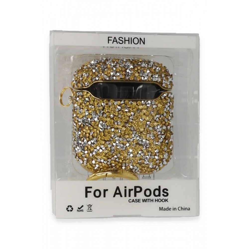 Airpods 2 (2.nesil) Mira Taşlı Kılıf - Gold-(5796)