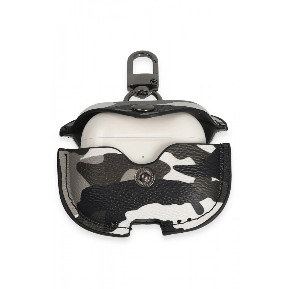 Airpods Pro 2 (2.nesil) Çanta Kamuflaj Deri Kılıf - Gri-(5796)