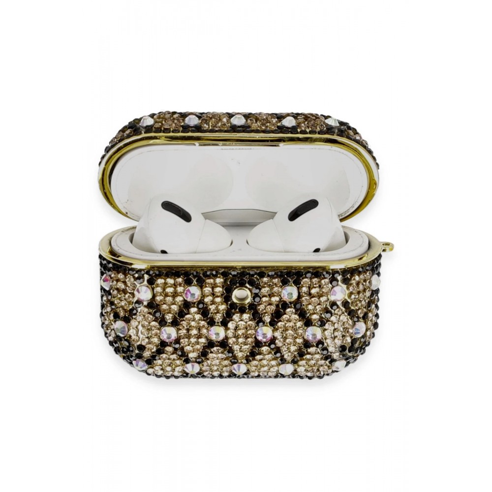 Airpods Pro 2 (2.nesil) Luz Taşlı Kılıf - Gold-(5796)