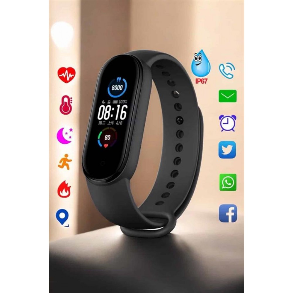 Bu akıllı bileklik, aktif yaşam tarzını benimseyen kullanıcılar için tasarlanmış modern bir sağlık v..
