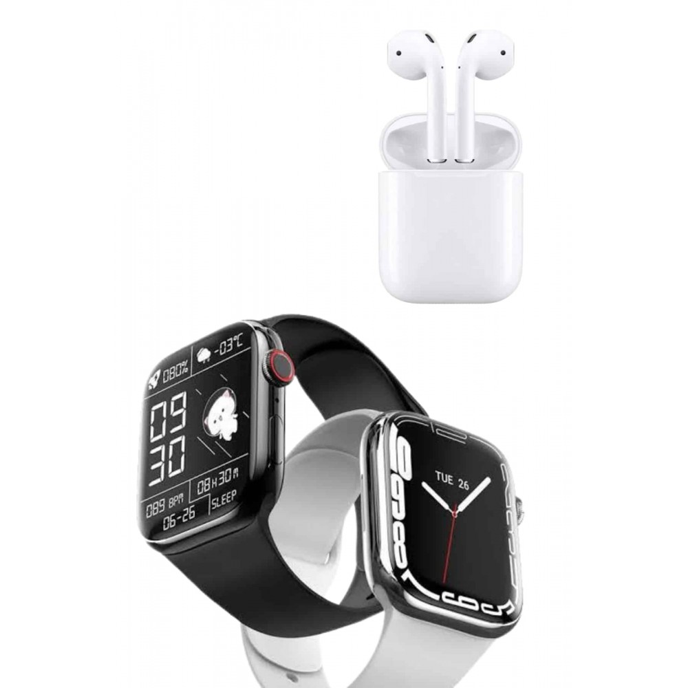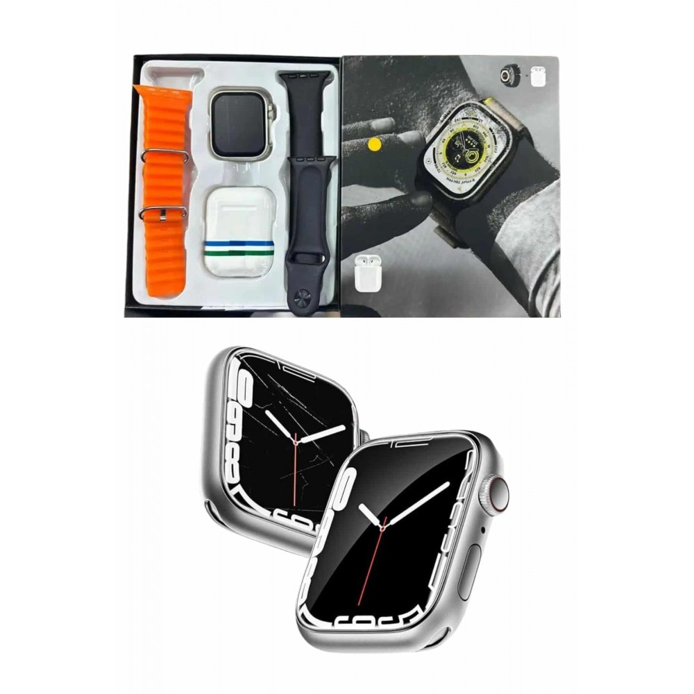 Akıllı Saat Gümüş Kasa Bluetooth Kulaklık Hediyeli Çok Fonksiyonlu İkili Set