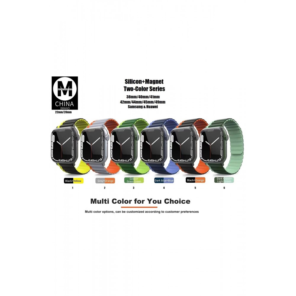 Apple Watch 42mm MO-WB1 Çift Renk Mıknatıslı Silikon Kordon - Siyah-Sarı-(5796)