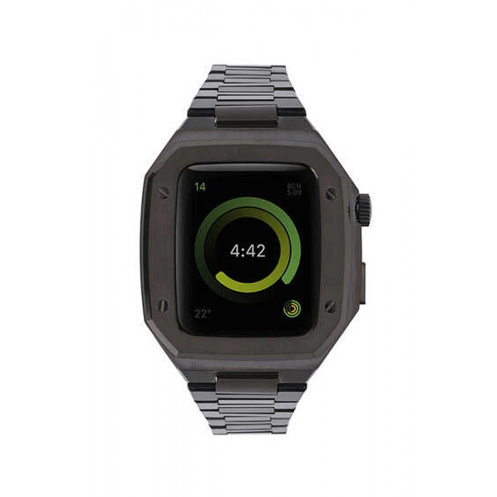 Apple Watch 44mm Metal Petek Kasalı Kordon - Siyah-(5796)