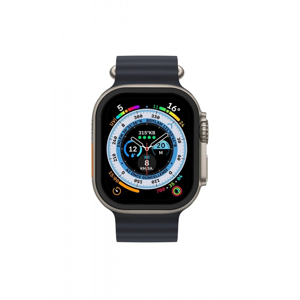Apple Watch Ultra 49mm Camlı Kasa Ekran Koruyucu - Siyah-(5796)