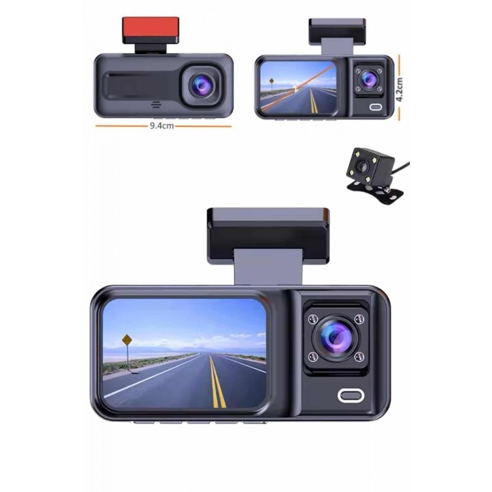 Bu çok kameralı araç içi güvenlik sistemi, sürüş sırasında çevrenizi kesintisiz olarak izleyip kayıt altına alarak güvenliği en üst düzeye çıkarır. Ürün, ön, iç ve arka olmak üzere toplam üç adet kameraya sahiptir. Ön kamera 1080P Full HD çözünürlük sunarken, iç ve arka kameralar 720P kalitesinde net görüntüler elde etmenizi sağlar. Böylece hem trafikte hem de park halindeyken araç çevresindeki tüm aktiviteleri kaydedebilirsiniz.2 inç IPS ekranı sayesinde görüntüleri canlı olarak izleyebilir ve menüler arasında rahatlıkla gezinebilirsiniz. 170 derece geniş açılı lensi ile kör nokta bırakmadan geniş bir alanı kapsar. Araç geri vitese alındığında park çizgileri otomatik olarak devreye girer ve arka kamera görüntüsü ekranda belirir, bu da park etmeyi son derece kolay ve güvenli hale getirir. Üstelik arka kamera kutu içeriğine hediye olarak dahil edilmiştir.64 GB’a kadar microSD kart desteği ile uzun süreli kayıt imkanı sunar. Döngüsel kayıt özelliği sayesinde hafıza dolduğunda en eski kayıtlar silinerek yenilere yer açılır, bu sayede kayıt işlemi kesintisiz devam eder. G sensörü teknolojisi ile araç park halindeyken dahi herhangi bir darbe, çarpma ya da cam kırılması anında otomatik olarak kayda başlar ve kritik anları güvence altına alır.Kompakt ve ergonomik tasarımıyla görüş alanını engellemeden ön cama kolayca monte edilebilir. Şık tasarımı sayesinde araç içi estetiği ile uyum sağlar. Gelişmiş özellikleriyle güvenlik bilinci yüksek sürücüler için ideal bir tercihtir.