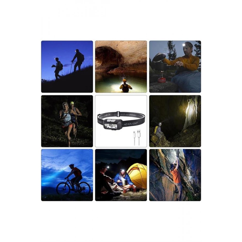 Şarj Edilebilir LED Kafa Feneri – 4 Işık Modu IPX5 Su Geçirmez Hareket Sensörlü