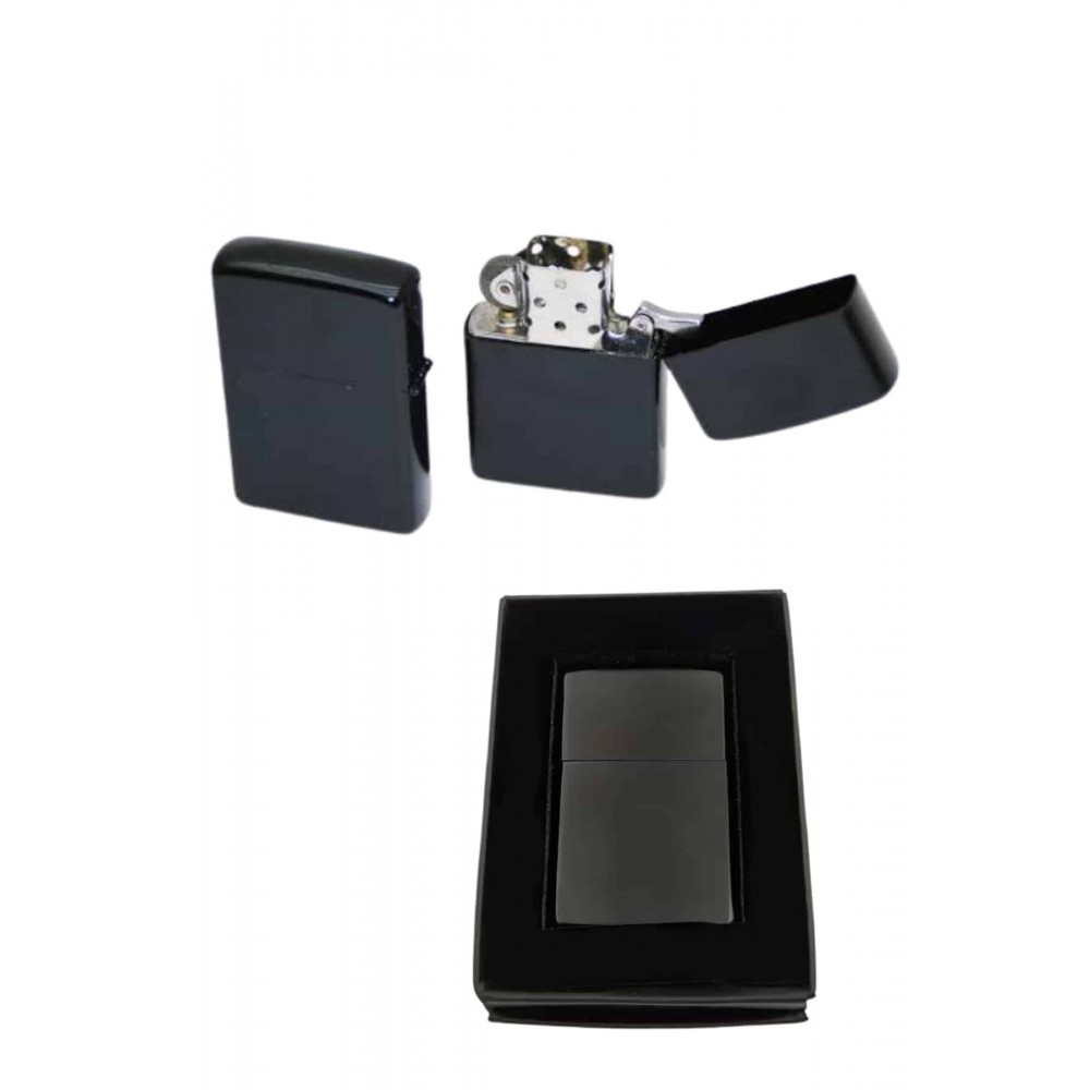 Çakmak Parlak Siyah Zippo Benzinli Çakmak Cep Boy Doldurulabilir