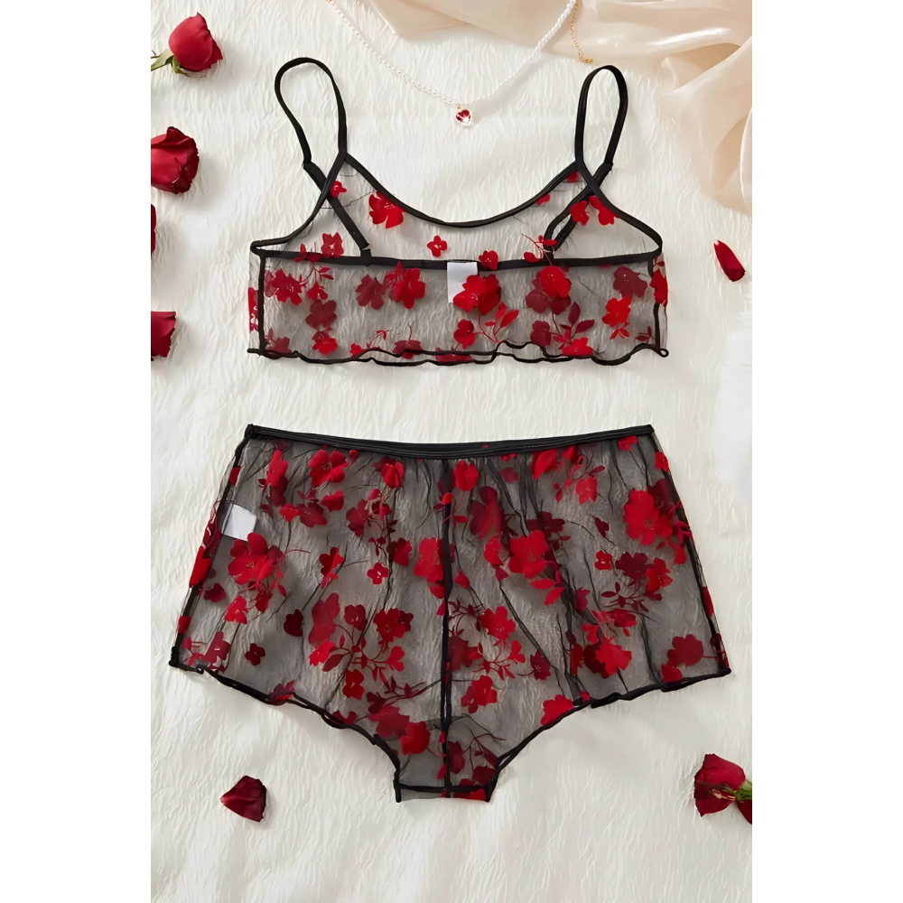 Çiçek Desenli Siyah Transparan Şortlu Gecelik TM1377