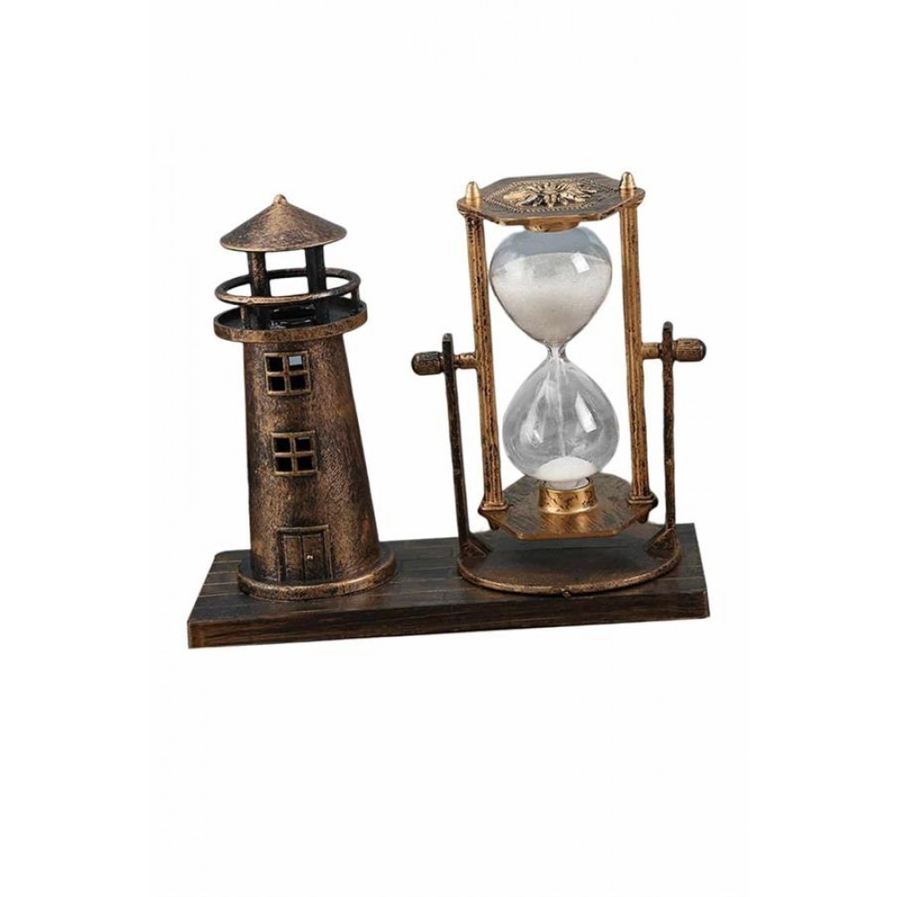 Modern ve Estetik TasarımBu özel kum saati, klasik kum saatlerinin modern bir yorumu olarak tasarlanmıştır. Deniz feneri figürüyle birleşen zarif formu, her tarza uyum sağlayabilecek bir dekorasyon öğesi olmasını sağlıyor. Cam bölmeler içerisindeki ince kum tanecikleri, üst hazneden alt hazneye süzülerek akarken büyüleyici bir görsel şölen sunuyor. Hareketli yapısıyla zamanı ölçmenin geleneksel bir yolunu hatırlatırken, aynı zamanda ortamın atmosferine sofistike bir dokunuş katıyor. Ofislerde masa üstünde veya çalışma odalarında huzurlu bir atmosfer yaratmak için ideal bir seçimdir.