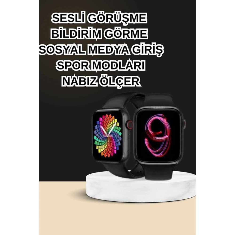 KULAKLIK:Dokunmatik kontrol özelliği sayesinde müziklerinizi ve çağrılarınızı kolayca yönetebilirsiniz. Dahili mikrofonu ile net görüşmeler yaparak, eller serbest deneyiminin keyfini çıkarın. Suya ve tere karşı dayanıklı yapısı sayesinde, spor aktivitelerinizde veya yağmurlu havalarda rahatlıkla kullanabilirsiniz. Çift telefon desteği ile iki cihaz arasında kesintisiz geçiş yaparak, bağlantıda kalın. Aktif gürültü engelleme (ANC) teknolojisi ile dış dünyanın gürültüsünü filtreleyerek, müziğinize tam odaklanabilirsiniz.AKILLI SAAT:Bu akıllı saat, modern teknoloji ile günlük hayatınızı kolaylaştıracak özellikleri bir araya getiren yenilikçi bir cihazdır. Tüm iOS ve Android akıllı telefonlarla uyumlu olan bu saat, geniş bir kullanıcı kitlesine hitap eder. Siri sesli asistan desteği sayesinde sesli komutlarla işlemlerinizi hızlıca gerçekleştirebilirsiniz. Bluetooth bağlantısı aracılığıyla çağrı yapma, çağrılara cevap verme veya reddetme, sık görüşülenler listesini yönetme, çağrı geçmişini görüntüleme ve arayan kimliğini görme gibi birçok özelliği destekler. Ayrıca, SMS ve diğer uygulamalardan gelen bildirimleri görüntüleme ve okuma imkanı sunar.44 mm paslanmaz çelik kasası, dayanıklılığı ve şıklığı bir arada sunar. 240x285 piksel çözünürlükteki, köşeden köşeye tam gelişmiş dokunmatik OLED ekranı, parlak ve net bir görüntü deneyimi sağlar. 280 mAh Li-Po bataryası, uzun süreli kullanım sunarak gün boyu yanınızda olmasını garanti eder. 128 MB bellek kapasitesi ve aktif iki yan tuşuyla kullanıcı dostu bir arayüz sunar.Sağlık ve spor odaklı özellikleriyle öne çıkan bu cihaz, günlük aktivitelerinizi ve sağlık durumunuzu takip etmenize yardımcı olur. Pedometre özelliğiyle egzersiz süresi, kat edilen mesafe ve yakılan kalori gibi verilere ulaşabilirsiniz. EKG, kan basıncı, tansiyon ölçümü ve kandaki oksijen oranını ölçme gibi üçlü sağlık takibi özellikleri sayesinde sağlığınızı yakından izleyebilirsiniz. Uyku takibi, hava durumu, kronometre, alarm, çağrı hatırlatma, hareketsizlik ve su içme hatırlatmaları gibi işlevlerle hayatınızı kolaylaştırır.Spor severler için, koşu, bisiklet, kuvvet antrenmanı, basketbol, tenis, voleybol ve futbol gibi çoklu spor modları sunar. Veri (DATA) sekmesi sayesinde günlük ve anlık sağlık verilerinizi analiz edebilirsiniz. Uygulama üzerinden sınırsız saat kadranı seçebilir ve ekranınıza dilediğiniz fotoğrafı yerleştirebilirsiniz. Akıllı bileklik hareket sensörü, ekranın kolayca açılıp kapanmasını sağlar.10 kişiye kadar hızlı arama özelliği, değiştirilebilir kordon seçeneği ve Türkçe dahil 23 farklı dil desteğiyle kişiselleştirilebilir bir deneyim sunar. Uçak modu ve rahatsız etme modu gibi işlevlerle kullanımınızı daha verimli hale getirebilirsiniz. Saat üzerinden müzik dinleme, uzaktan fotoğraf çekme gibi eğlenceli özellikler de cihazın dikkat çeken detayları arasındadır.Şıklığı, dayanıklılığı ve fonksiyonelliği bir araya getiren bu akıllı saat, hem teknoloji tutkunları hem de aktif bir yaşam tarzını benimseyen kullanıcılar için mükemmel bir tercihtir.