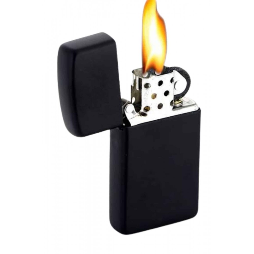 Doldurulabilir Siyah Benzinli Çakmak Metalik