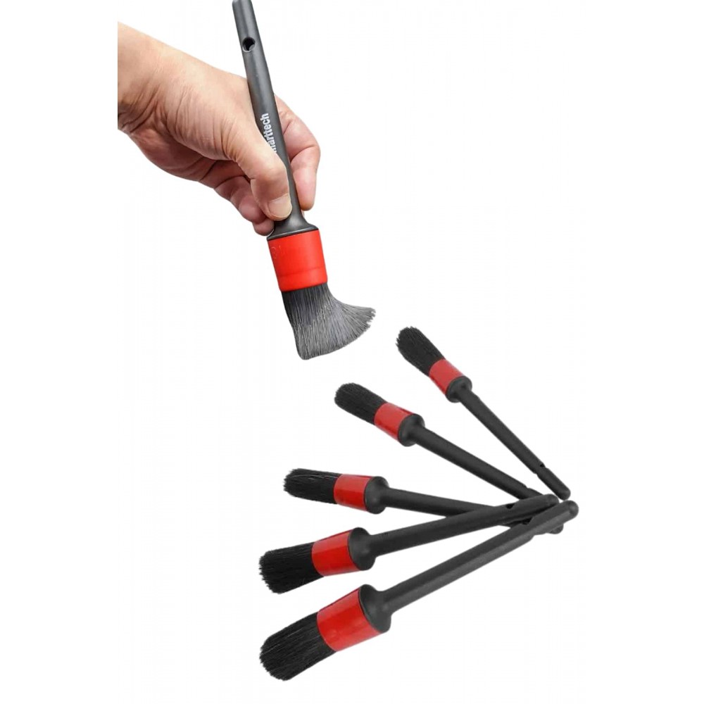 Araç temizliğinde detaylara önem veren kullanıcılar için geliştirilen bu fırça seti, 5 farklı boyutt..
