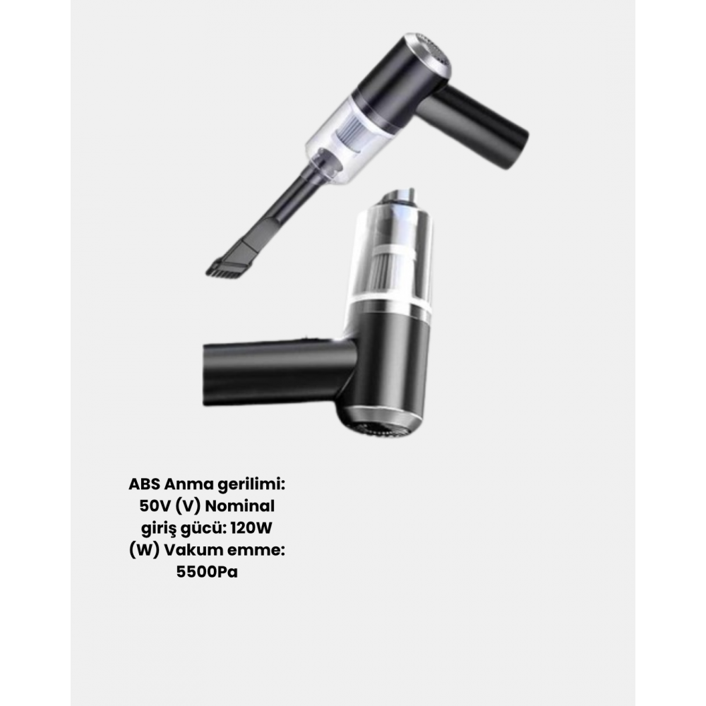 Mini Şarjlı Araç Süpürgesi – 120W Güçlü Motor 5500PA Vakum Emiş Yıkanabilir Filtre