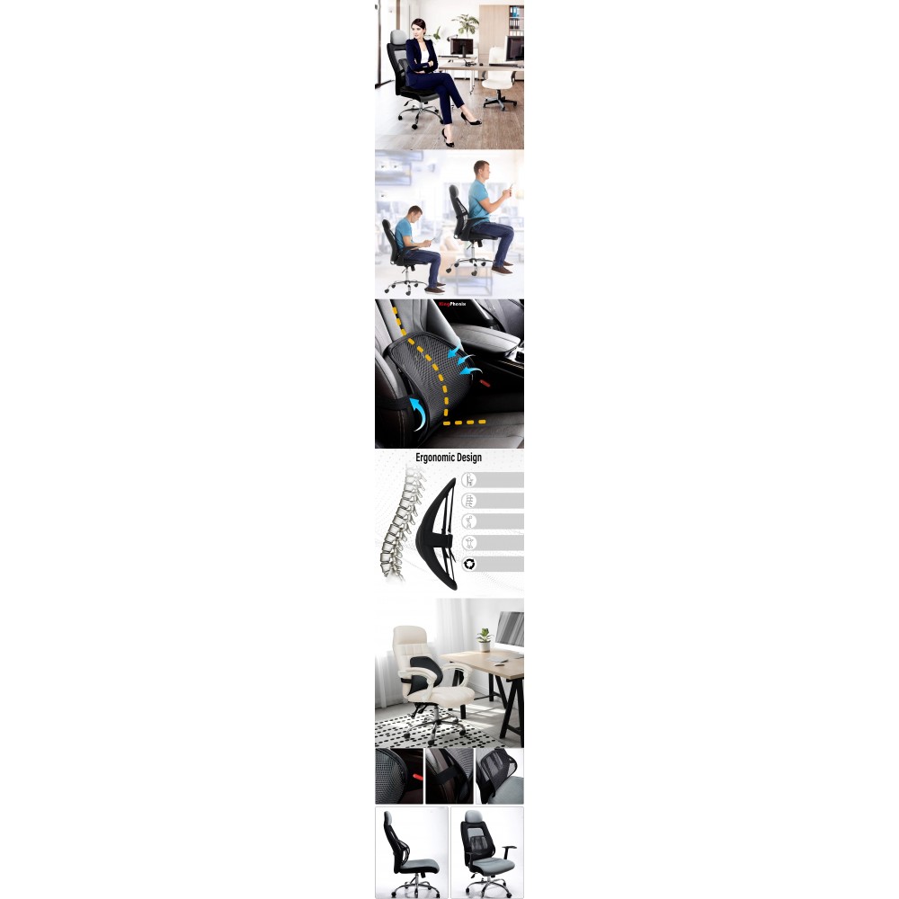 Ergonomik Tasarım : Sandalye desteği, oturma duruşunuzu düzeltmenize yardımcı olacak ergonomik tasarımı benimser, sırt kasınızın rahatlamasına izin verir. Sandalye için bel desteği yastığıyla karşılaştırıldığında file bel desteğimizin alınması ve çıkarılması kolaydır.