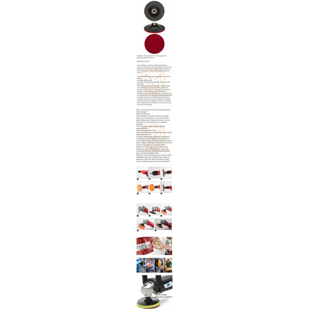 KULLANIM : Destek pedi, açılı taşlamalarda, tezgah taşlama makinelerinde, elektrikli matkaplarda ve diğer pnömatik ve elektrikli aletlerde kullanım için zımpara kağıtları veya parlatma pedleri ile kullanılır. Ahşap ürünler, otomobiller, metal ürünler ve zemin ve duvar parlatma için yaygın olarak kullanılır.