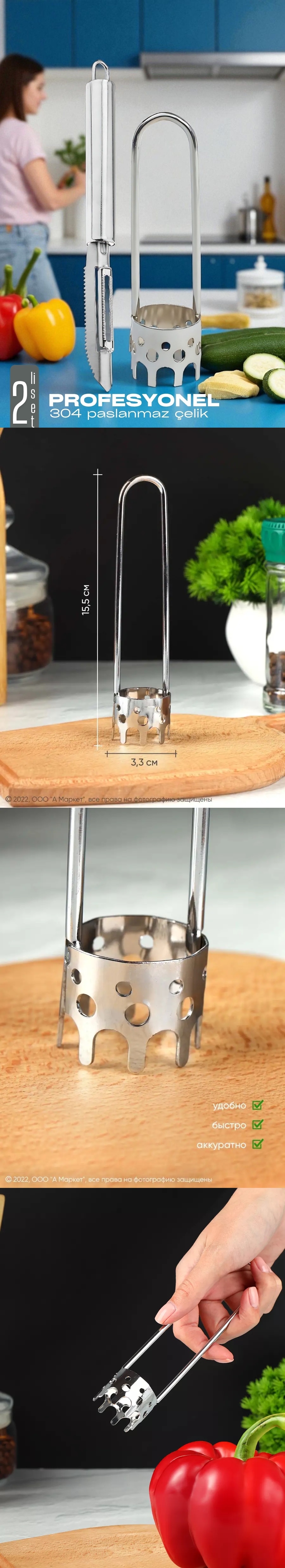 2’li Paslanmaz Çelik Mutfak Seti – Soyacak & Dolmalık Biber Temizleyici | 304 Kalite Profesyonel Yardımcılar