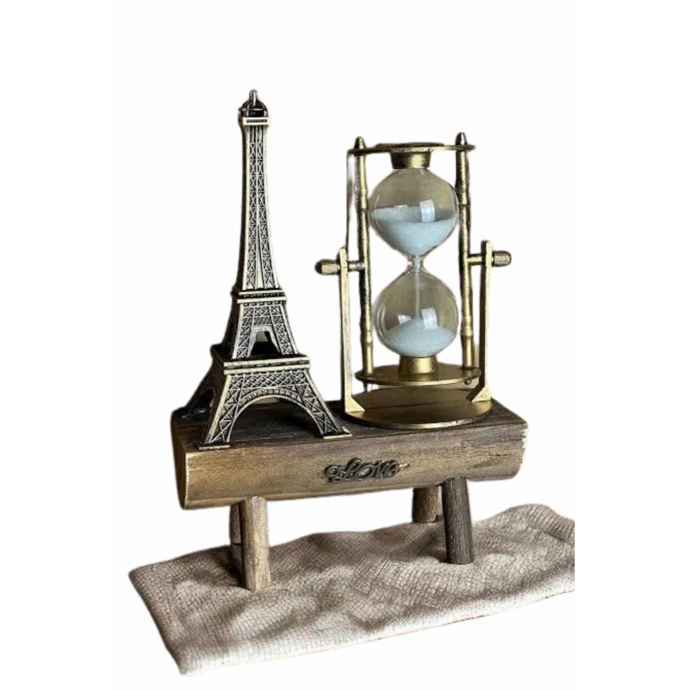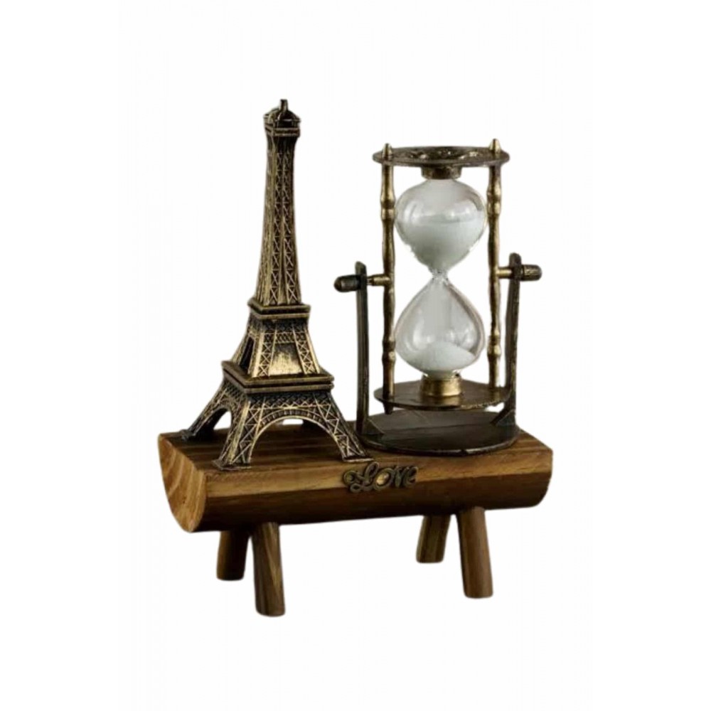 Eyfel Kulesi Tasarımlı Kum Saati Kristalleştirilmiş Kum Saati Dekoratif Ahşap Görünümlü