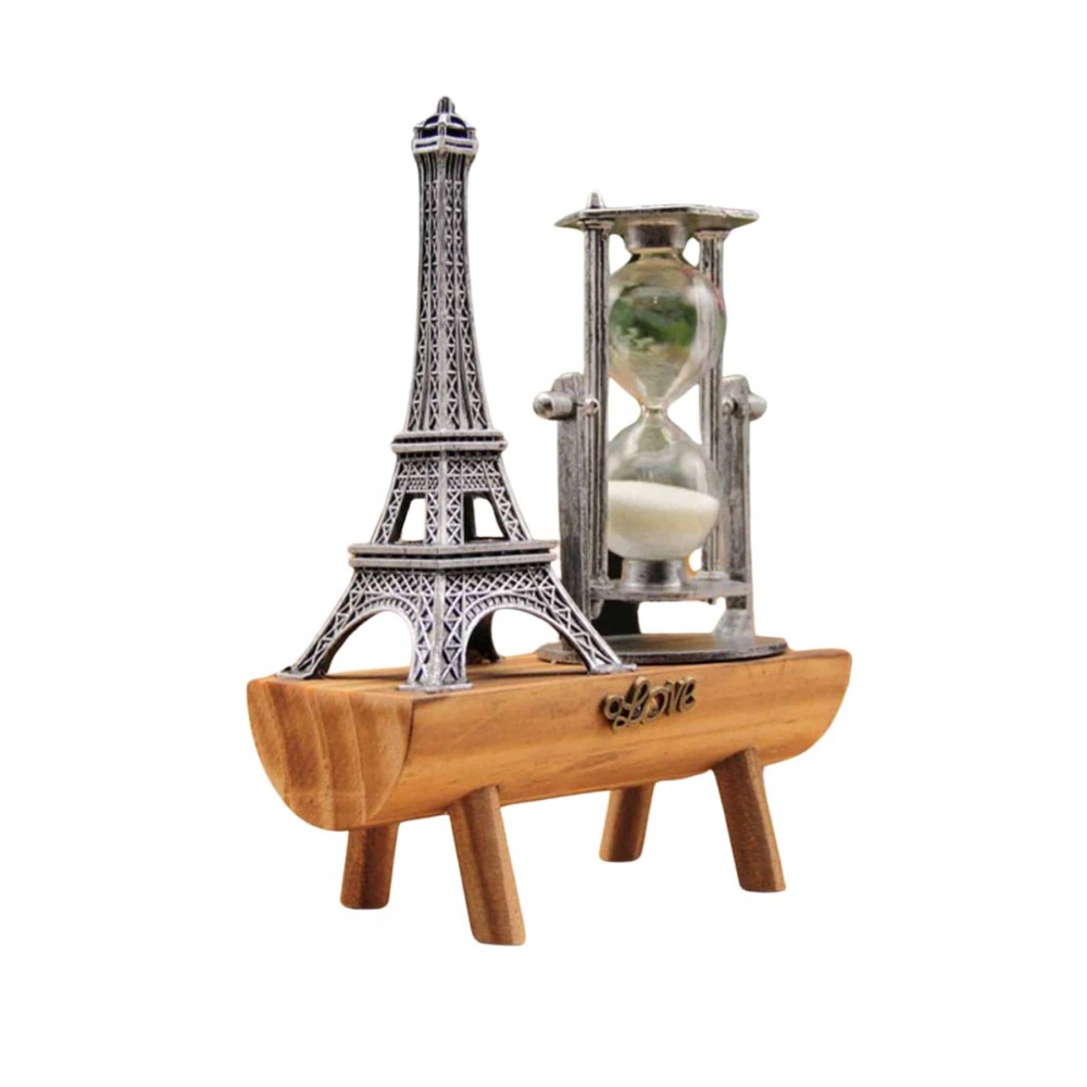 Eyfel Kulesi Tasarımlı Kum Saati Kristalleştirilmiş Kum Saati Dekoratif Ahşap Görünümlü