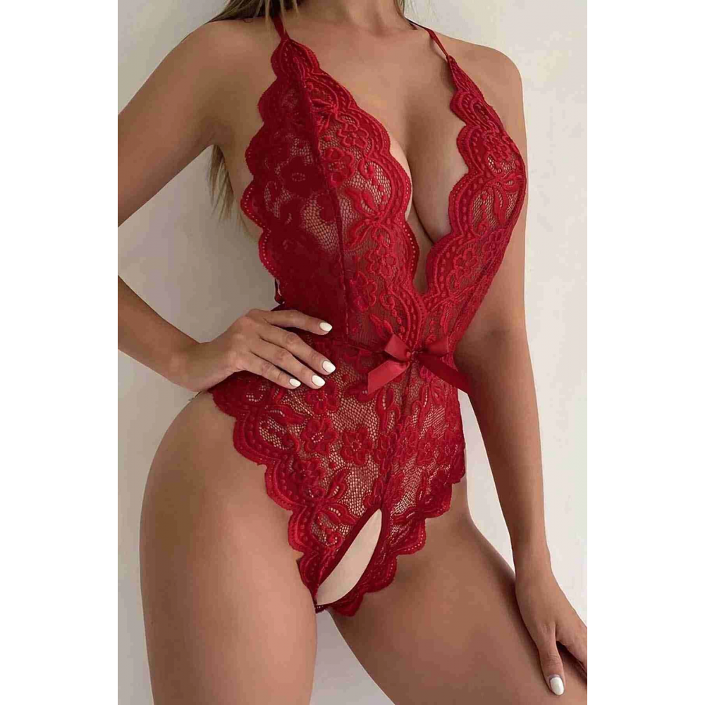 Arkası Açık Dantelli Kırmızı Fantazi Babydoll TM1287