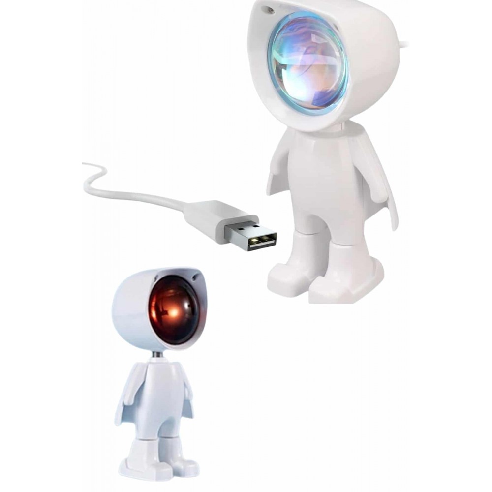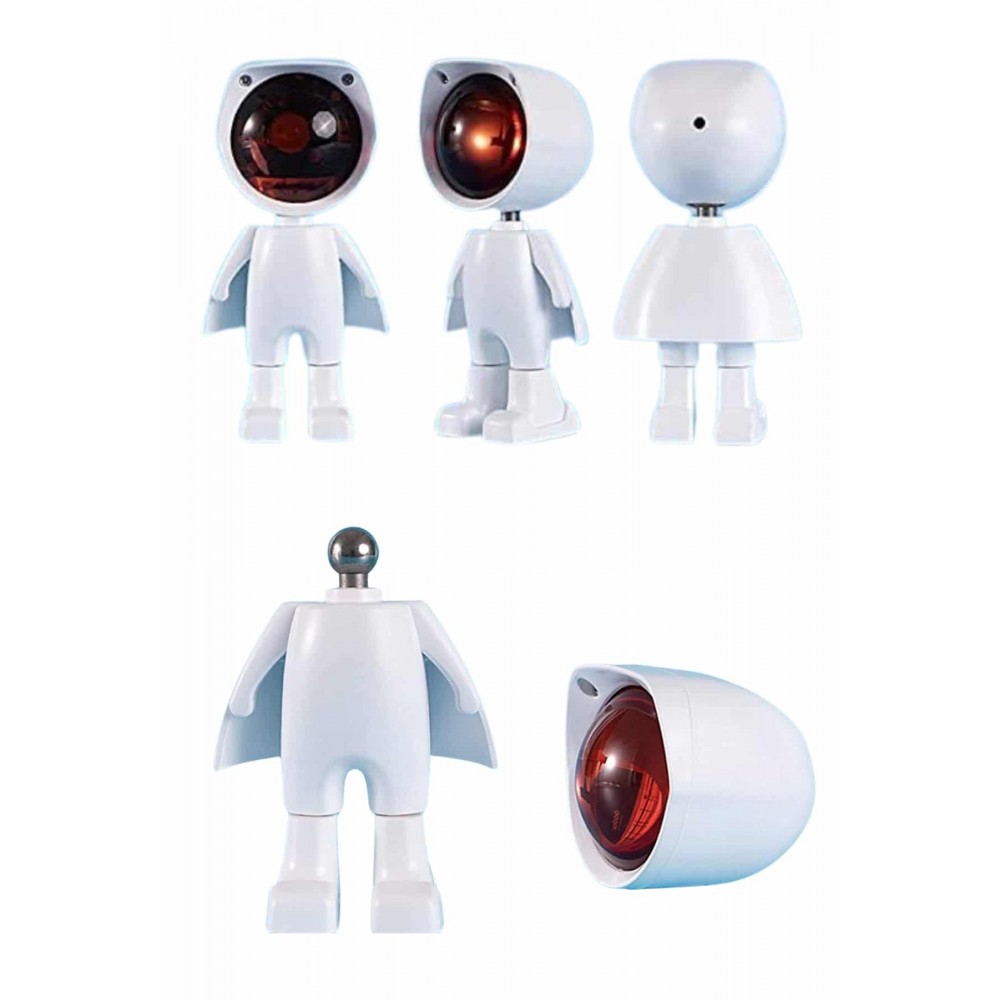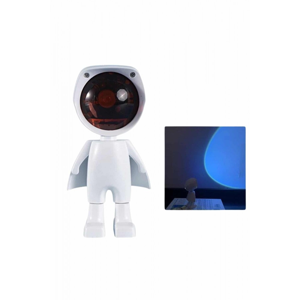 Bu gün batımı efektli dekoratif lamba, sevimli astronot tasarımıyla yalnızca bir aydınlatma aracı değil, aynı zamanda bulunduğu ortama karakter katan şık bir obje olarak öne çıkar. Gün batımı ışık tonlarıyla mekanlara sıcaklık ve romantizm katan bu lamba, özellikle estetik detaylara önem veren kullanıcılar için tasarlanmıştır. Minimalist boyutları sayesinde ister evde ister dış mekânda kolaylıkla kullanılabilir.Işık kaynağı olarak kullanılan 5 Watt’lık LED, enerji tasarrufuyla birlikte uzun ömürlü ve göz yormayan yumuşak bir aydınlatma sunar. Lamba kafasının 360 derece yatay ve 60 derece dikey hareket edebilmesi, ışığın yönünü ihtiyacınıza göre özgürce ayarlayabilmenizi sağlar. Böylece ister tavanı ister bir duvarı yumuşak bir gün batımı tonuna bürüyebilir, ister kitap okurken odaklı bir ışık elde edebilirsiniz.Dokunmatik kontrol paneli, kullanım kolaylığı sağlayarak lambayı açma, kapama ve parlaklık ayarı yapma imkânı tanır. Aynı zamanda şarjlı kullanım özelliği sayesinde priz bağımlılığını ortadan kaldırır; tam dolu batarya ile 3-4 saate kadar kesintisiz ışık sunar. USB kablosu ile kolayca şarj edilir ve kullanıma hazır hale gelir.Sadece ev içinde değil, seyahatlerde, kamp etkinliklerinde ya da fotoğraf ve video çekimlerinde de kullanılabilecek şekilde tasarlanmış olan bu ürün, yaratıcı ışık efektleriyle fotoğraflarınıza benzersiz bir hava katabilir. Özellikle yatak odası, oturma odası ya da çalışma alanlarında hem şıklık hem de işlevsellik isteyen kullanıcılar için ideal bir seçenektir.Gece lambası olarak da kullanılabilen bu astronot temalı ışık, huzur veren tonlarıyla uykuya geçişi kolaylaştırır. Romantik ambiyanslar yaratmak isteyenler için mükemmel bir atmosfer sağlayan bu ürün, hediye alternatifi olarak da oldukça dikkat çekici ve anlamlıdır.