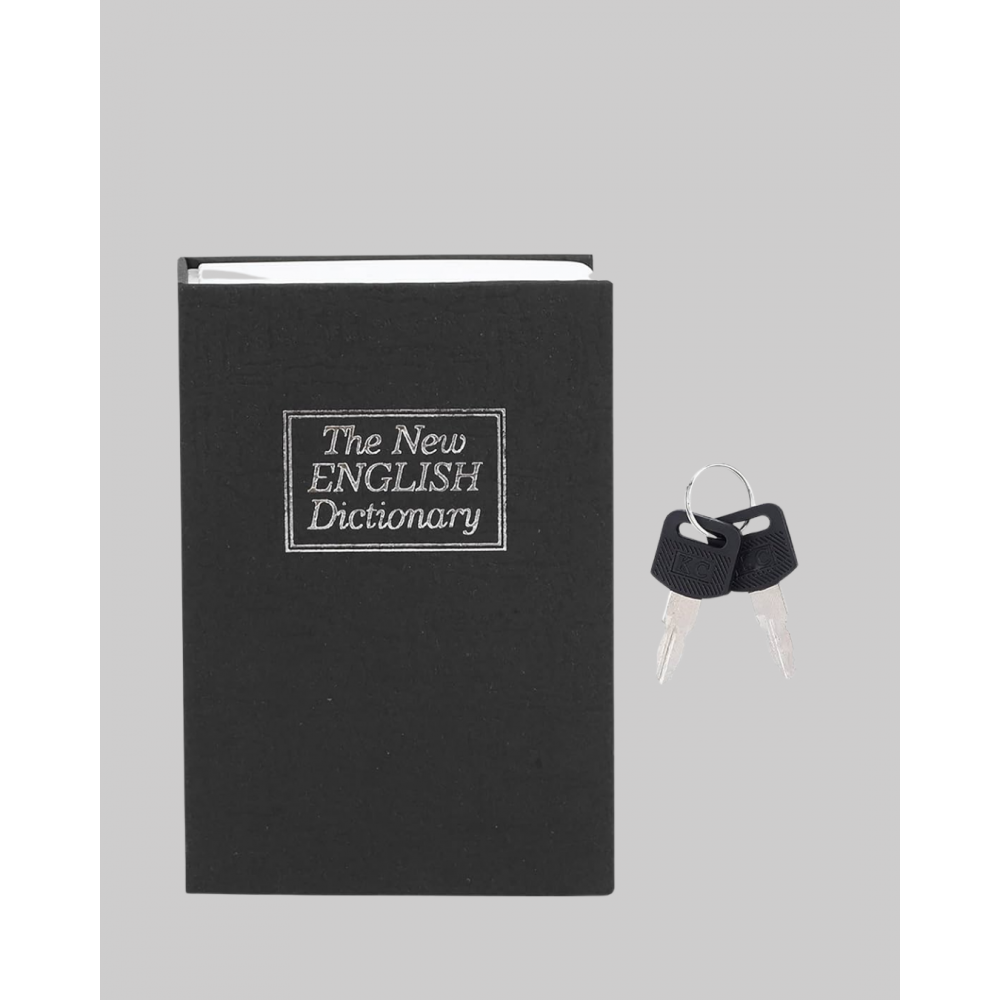Değerli eşyalarınızı güvenle saklamak hiç bu kadar pratik olmamıştı! Bu gizli kitap kasa, klasik bir İngilizce sözlük görünümüyle dikkat çekmeden eşyalarınızı koruma altına almanızı sağlar. Gerçek bir kitap gibi görünen dış cildi sayesinde dolapta, kitaplıkta veya ofis rafında fark edilmeden saklanabilir.Dış kısmı sert karton ve kaplamalı cilt malzemeden, iç kısmı ise dayanıklı metal kasadan üretilmiştir. Bu sayede dışarıdan sıradan bir kitap gibi görünürken, içte maksimum güvenlik sağlar.Kilitli iç kasa, iki adet anahtar ile birlikte gelir; sadece sizin erişiminiz mümkündür. Takılar, nakit para, pasaport, evrak, özel belgeler veya hatıra eşyalarınızı güvenle saklamak için mükemmel bir çözüm sunar.Kompakt boyutları (18,5 x 11,5 x 5,6 cm) sayesinde kitaplığınızda rahatlıkla kamufle olur. Hafif ve taşınabilir yapısı, seyahatlerde de kullanılmasını kolaylaştırır.Estetik görünümüyle hem ev hem ofis dekoruna uyum sağlar; sade tasarımı sayesinde hiçbir şekilde dikkat çekmez.Güvenliği, gizliliği ve şıklığı bir arada sunan bu gizli kitap kasa, hem pratik hem ekonomik bir güvenlik çözümüdür.Değer verdiğiniz eşyalarınızı saklarken kimsenin fark etmeyeceği kadar zarif bir koruma sağlar!