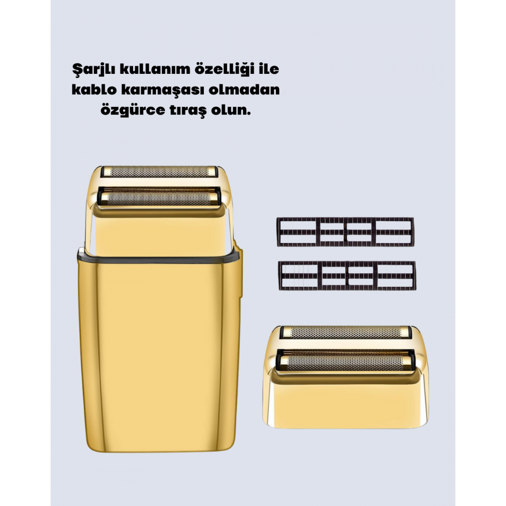 Çift Başlık ve Favori Şekillendirme Özellikli Altın Renk Tıraş Makinesi