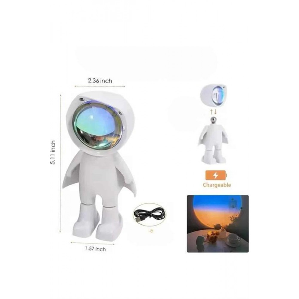 Gün batımı efektli bu şarjlı lamba, sevimli astronot tasarımı ile dikkat çeken hem işlevsel hem de dekoratif bir aydınlatma çözümüdür. LED ışık kaynağı sayesinde loş, yumuşak ve sıcak bir aydınlatma sunar; böylece ortamda huzurlu ve sakin bir atmosfer yaratır. Özellikle yatak odası, oturma odası ya da çalışma alanları gibi kişisel yaşam alanlarında hem gece lambası hem de ortam ışığı olarak rahatlıkla kullanılabilir.360 derece dönebilen başlığı ve 60 derece yukarı-aşağı hareket kabiliyeti sayesinde ışığın açısını kolaylıkla ayarlayabilir, istediğiniz duvar ya da alana doğrudan yansıtabilirsiniz. Bu sayede yalnızca ortama ışık vermekle kalmaz, aynı zamanda dekoratif bir efekt yaratır. Kompakt ve taşınabilir yapısıyla ev dışında da rahatlıkla kullanılabilir; ister seyahatlerde ister dış mekân etkinliklerinde şarjlı yapısıyla kablosuz olarak yanınızda taşıyabilirsiniz.USB kablosu ile kolayca şarj edilen bu ürün, tam dolumda yaklaşık 3-4 saat kesintisiz kullanım sunar. Güç kaynağına bağlıyken ise sınırsız kullanım avantajı sağlar. Dokunmatik kontrol paneli ile ışığı açıp kapamak ve parlaklık seviyesini ayarlamak son derece pratiktir. Bu özellik, hem kullanım kolaylığı hem de modern bir deneyim sunar.Gün batımı projektör lambası, yalnızca fonksiyonel bir gece lambası değil, aynı zamanda romantik ve sıcak bir ambiyans yaratmak isteyenler için eşsiz bir aksesuardır. Film izlerken, kitap okurken ya da sadece dinlenmek istediğinizde ortamı yumuşak ışığıyla dönüştürür. Ayrıca fotoğraf ve video çekimlerinde estetik bir arka plan ışığı olarak da kullanılabilir. Şıklığı ve işlevselliği bir arada sunan bu ürün, hem kendiniz için hem de sevdiklerinize hediye olarak ideal bir tercihtir.