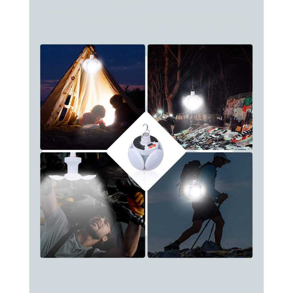 Gelişmiş aydınlatma performansı ve çok yönlü kullanım imkânı sunan bu katlanabilir LED kamp lambası, kampçılar, açık hava tutkunları ve acil durum hazırlıkları için ideal bir çözümdür. Dört adet LED panel, 90 dereceye kadar katlanabilir yapısıyla 360 dereceye yakın geniş bir alanı aydınlatabilir. Geniş açılı ışık dağılımı sayesinde çadır, bahçe, garaj veya karavan gibi farklı ortamları homojen bir şekilde aydınlatır.Güneş paneli ile gün içinde kolayca şarj olabilen cihaz, aynı zamanda USB girişi sayesinde priz veya powerbank aracılığıyla da şarj edilebilir. 1200 mAh lityum iyon pili ile uzun süreli kullanım sağlar ve sık sık pil değiştirme derdini ortadan kaldırır. 5 farklı ışık modu (yüksek, orta, düşük, flaş, SOS) ile ortama uygun parlaklık seviyesini seçebilir, uzaktan kumanda ile kontrolü kolayca gerçekleştirebilirsiniz.IPX4 su geçirmezlik seviyesi, yağmur veya nemli koşullarda bile kesintisiz kullanım sunar. Hafif ama dayanıklı plastik gövdesi, dış mekan şartlarına uygun şekilde üretilmiştir. Üst kısmında yer alan asma kancası sayesinde kolayca çadıra, ağaca ya da tavan bağlantılarına monte edilebilir.Evde elektrik kesintileri için acil durum lambası, doğada kamp veya gece yürüyüşleri için güçlü bir aydınlatıcı ya da bahçenizde dekoratif bir ışık kaynağı olarak güvenle kullanılabilir. Hem şık hem fonksiyonel bu çok amaçlı kamp lambası, pratikliğiyle vazgeçilmez eşyalarınız arasında yerini alacak.