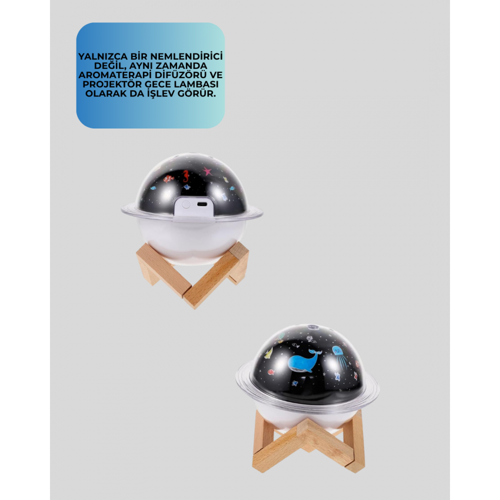 Dekoratif USB Projeksiyon Gece Lambası ve Hava Nemlendirici, yaşam alanınızda hem sağlıklı bir atmos..