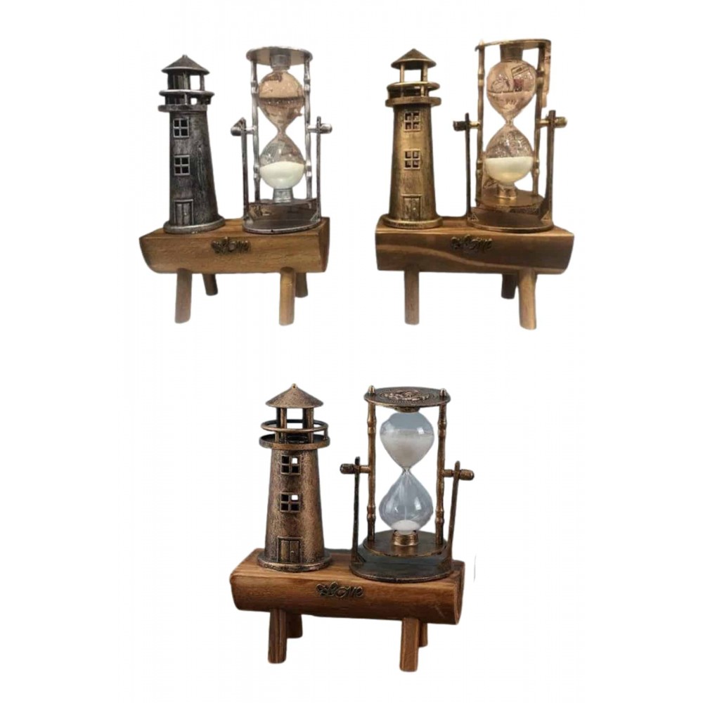 Hediyelik Eşya Retro Deniz Fenerli Kum Saati Ahşap Görünümlü Dekoratif Eşya