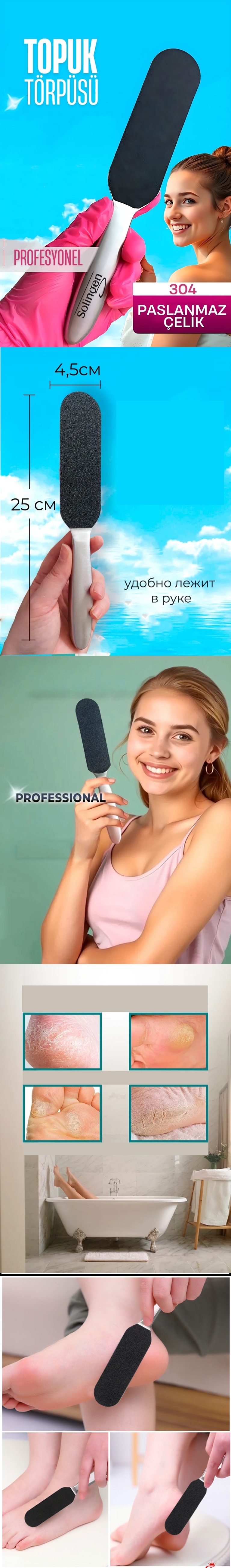 "25 x 4,5 cm ölçülerindeki bu paslanmaz çelik topuk törpüsü; geniş yüzeyi, ergonomik kavrama yapısı ve uzun ömürlü materyaliyle hem profesyonel ayak bakımı hem de evde etkili kullanım için mükemmel bir seçenektir."