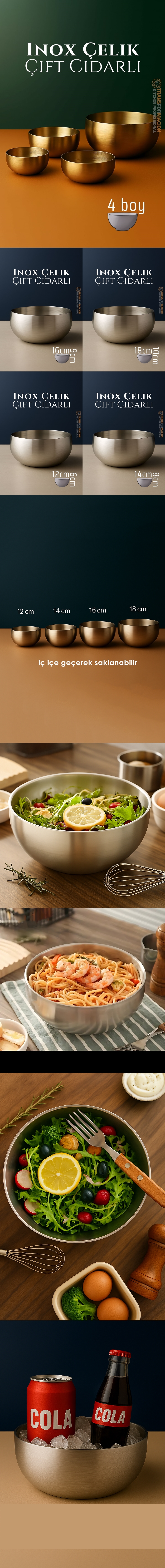Mutfağınızda hem şıklık hem de pratiklik arıyorsanız, bu çift cidarlı INOX çelik kase seti tam size göre.