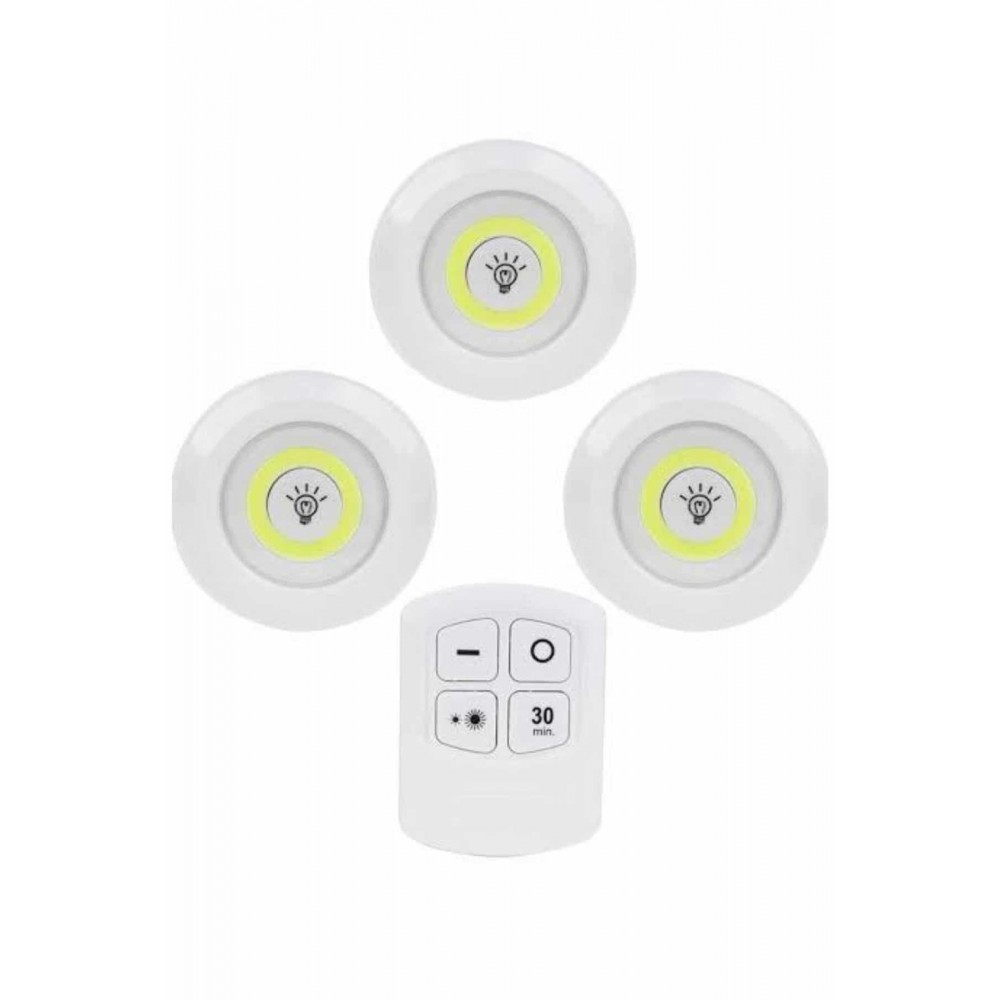Kablosuz Kumandalı LED Spot Lamba Seti | 3’lü Paket | Işık Ayarı, Zamanlayıcı, Kolay MontajEv içi aydınlatma ihtiyaçlarınıza pratik ve şık bir çözüm sunan bu kablosuz LED spot lamba seti, ergonomik tasarımı ve kullanıcı dostu özellikleriyle öne çıkar. Özellikle banyo, mutfak, gardırop içi ve koridor gibi alanlarda ekstra ışığa ihtiyaç duyduğunuz her yerde kullanıma uygundur. Minimal boyutlarına rağmen güçlü aydınlatma sunan COB LED teknolojisi sayesinde, hem enerji tasarrufu sağlar hem de göz yormayan bir ışık kalitesi sunar.Her spot, 3 adet AAA pil ile çalışır (piller dahil değildir), böylece prize ihtiyaç duymadan her yüzeye monte edilebilir. Ürünle birlikte gelen akıllı kumanda sayesinde, ışıkları uzaktan açıp kapatabilir, ışık şiddetini artırıp azaltabilir veya 30 dakikalık zamanlayıcı fonksiyonu ile otomatik kapanmasını sağlayabilirsiniz. Ayrıca, spotların üzerindeki tuşlar sayesinde manuel kontrol de mümkündür; böylece kumandaya erişiminiz olmasa dahi lambaları rahatça kullanabilirsiniz.Kumandanın kaybolmaması için özel olarak tasarlanmış duvara monte edilebilir haznesi, her zaman ulaşılabilir bir konumda sabit durmasını sağlar. Kurulum konusunda da kullanıcıya büyük kolaylık sunan ürün, çift taraflı yapışkan bantlarıyla birlikte gelir. Bu sayede vidalama ya da matkap gibi işlemlere gerek kalmadan, lambaları düz ve temiz yüzeylere saniyeler içinde sabitleyebilirsiniz.Set içerisinde 3 adet LED spot ve 1 adet kumanda bulunur. Fonksiyonel özellikleri, akıllı tasarımı ve kolay montajıyla bu LED spot seti; hem dekoratif hem de ihtiyaç odaklı aydınlatma çözümleri arayan kullanıcılar için ideal bir tercihtir.