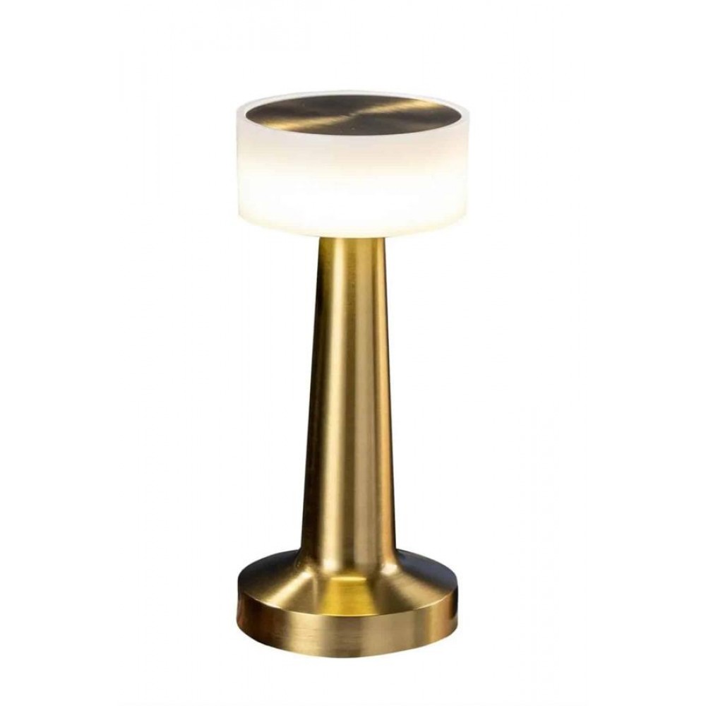 Altın renkli kablosuz masa lambası, zarif tasarımıyla estetik ve fonksiyonelliği bir arada sunar. Ka..