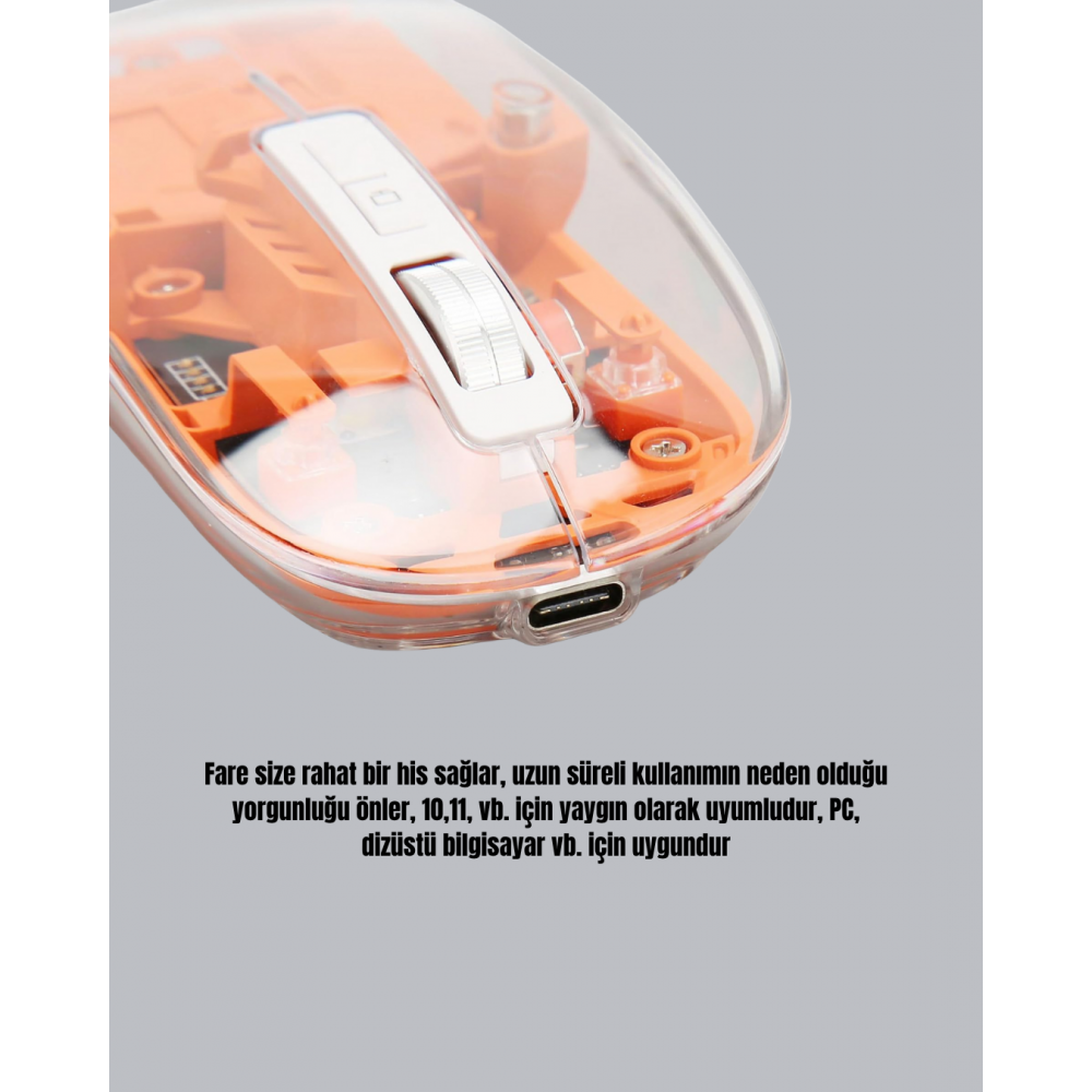Bu ergonomik kablosuz fare, hem ev hem de ofis ortamları için yüksek konfor ve işlevsellik sunar. Sessiz tıklama teknolojisi sayesinde %90 daha az ses çıkarır, böylece toplantı, gece çalışması veya kalabalık ortamlarda dikkat dağıtmadan kullanılabilir. Ergonomik tasarımı elin doğal yapısını destekler ve uzun süreli kullanımlarda bile el yorgunluğunu minimuma indirir.Çift modlu bağlantı özelliği ile Bluetooth 5.0 ve 2.4GHz kablosuz teknolojileri arasında kolayca geçiş yapabilir, aynı anda birden fazla cihazla eşleştirme yapabilirsiniz. USB nano alıcısı için özel tasarlanmış manyetik saklama yuvası, taşınabilirlik ve pratiklik sağlar. Üstelik üst kapak da manyetik sistemle açılıp kapanabilir.1600 DPI optik sensörü, hassas ve akıcı bir kullanım deneyimi sunar. Ayrıca DPI seviyesi 1000 ile 5000 arasında ayarlanabilir, böylece ister hızlı ister detaylı işlemlerde kişisel kontrol sağlar.Dahili şarjlı batarya, tek şarjla 30 güne kadar kullanım sunarken, sadece 40 dakikada tam doluma ulaşır. Pil durumu entegre göstergeyle kolayca takip edilebilir. Otomatik uyku modu sayesinde kullanılmadığında enerji tüketimini azaltarak pil ömrünü uzatır.