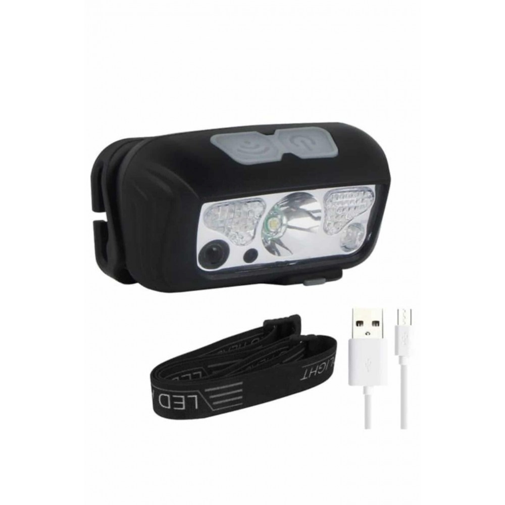 Beyaz Led Işık Sensörlü Kafa Lambası Lityum Batarya Led El Fenerli Şarjlı