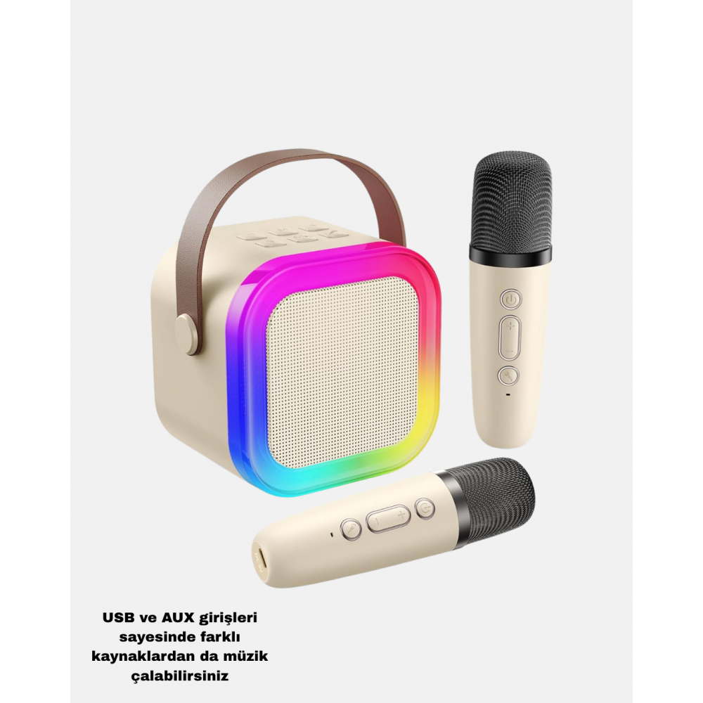 Eğlenceyi her an, her yerde yaşayın! Bluetooth Karaoke Hoparlör Renkli LED Işıklı ve Type-C Şarjlı, ..