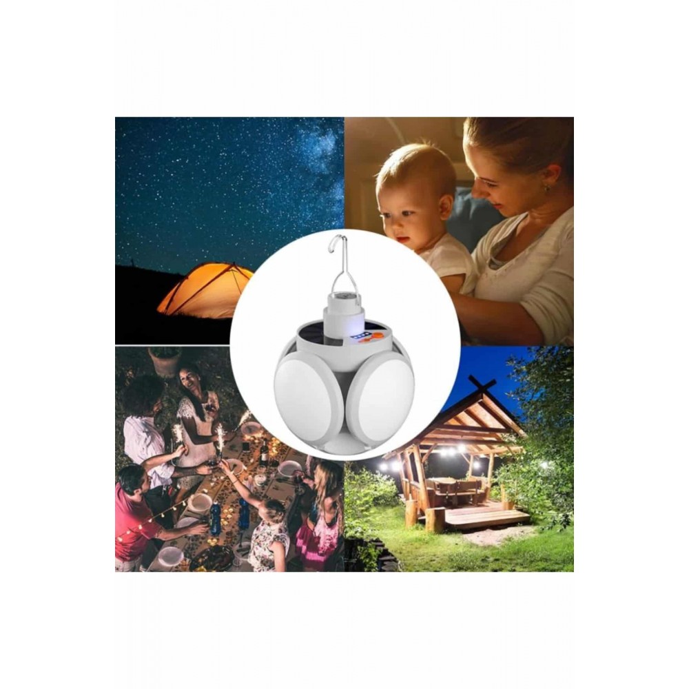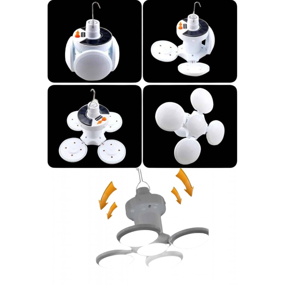 Solar Güneş Enerjisi ve USB Şarjlı 5 Kanatlı Taşınabilir Lamba – Çok Fonksiyonlu, Dayanıklı ve Çevre Dostu AydınlatmaHer türlü açık hava etkinliği, acil durumlar ve günlük yaşamda ihtiyaç duyduğunuz aydınlatmayı sağlayacak pratik bir çözüm arıyorsanız, Solar Güneş Enerjisi ve USB Şarjlı 5 Kanatlı Taşınabilir Lamba tam ihtiyacınızı karşılayacak özelliklere sahip! Güneş enerjisiyle veya USB ile şarj edilebilir özelliğiyle her koşulda güvenilir bir ışık kaynağı sunan bu lamba, taşınabilirliği ve pratik kullanımıyla ön plana çıkar.5 kanatlı tasarım, ışığı geniş bir alana yayarak daha etkili bir aydınlatma sağlar. Ayrıca, katlanabilir özellik sayesinde ışık açısını istediğiniz gibi ayarlayabilir ve karanlık alanlarda daha geniş bir bölgeyi rahatlıkla aydınlatabilirsiniz. Askı aparatı ile dilediğiniz yere asarak kolayca kullanabilirsiniz. Bu özellik, özellikle kamp, piknik ve açık hava etkinlikleri için son derece kullanışlıdır.Güneş enerjisiyle şarj etme özelliği, doğa dostu bir kullanım sunar. Ayrıca, USB şarj seçeneği ile hızla enerji depolayabilir, acil durumlarda her zaman kullanıma hazır olmasını sağlayabilirsiniz. Ürün, su geçirmez IP65 özelliğiyle dış mekan koşullarına dayanıklıdır, bu sayede yağmurda bile güvenle kullanılabilir.45 LED ışık kaynağı, ışığın parlaklığını artırarak etrafınızı net bir şekilde aydınlatır ve 6500K renk sıcaklığı ile etkili bir görüş sağlar. 6-8 saat çalışma süresi ile uzun süreli kullanım imkânı sunar.Teknik Özellikler:Güneş Paneli: 5.5V polikristal silikon güneş paneliPil: 18650 lityum pil, 2400mAhIşık Kaynağı: 45 LEDÇalışma Süresi: 6-8 saatŞarj Süresi: Solar şarj için 8 saat / USB şarj ile 6 saatŞarj Yöntemi: Solar şarj (DC 3.5V) / USB şarj (voltaj 4.5V)Su Geçirmezlik: IP65Renk Sıcaklığı: 6500KÜrün Boyutu: 14 cm * 11.5 cmPaket İçeriği:1 Adet 5 Kanatlı Solar Pratik LambaDoğada, evinizde ya da acil durumlarda kullanabileceğiniz bu solar lamba, yüksek verimliliği, dayanıklılığı ve esnek kullanım özellikleri ile her zaman yanınızda olması gereken bir aydınlatma aracı olacaktır. Hem güneş enerjisiyle hem de USB şarj ile enerji toplama seçenekleri sayesinde her durumda işinizi kolaylaştırır.