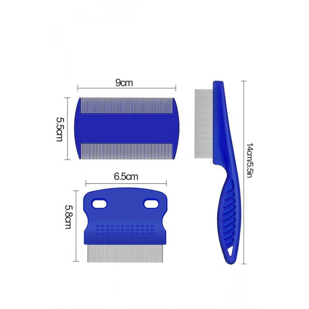 4'lü Bit Pire Tarağı Set Kedi Köpek Evcil Hayvan Tüy Toplayıcı Mavi
