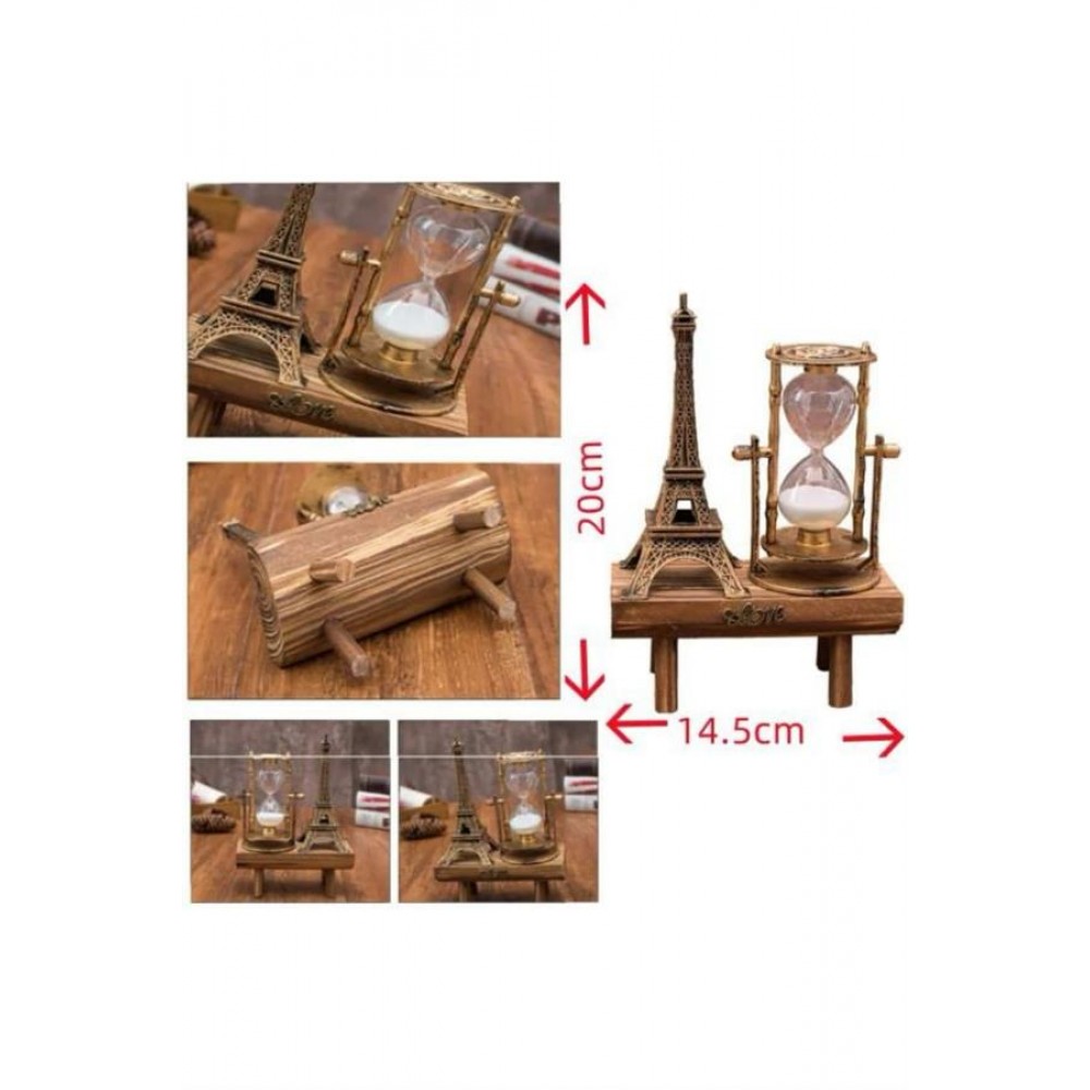 Demir Kule Temalı Dekoratif TasarımBu özel tasarım kum saati, dünyaca ünlü Demir Kule siluetiyle süslenmiştir ve her detayında zarif işçilik hissedilir. Klasik ve vintage tarzı benimseyenler için mükemmel bir dekoratif obje olmasının yanı sıra, nostaljik bir hava katmak isteyenler için de harika bir seçimdir. Şık metal çerçevesi ve dayanıklı cam bölmesi sayesinde, hem ev hem de ofis ortamlarında kullanım için uygundur. Çalışma masaları, kitaplıklar, sehpa üstleri veya vitrinlerde sergilendiğinde ortama sofistike bir hava katar.