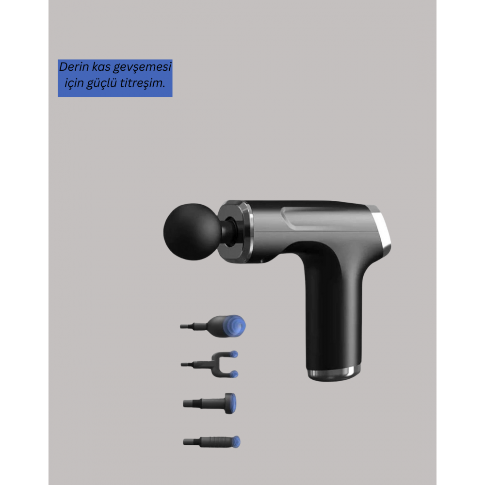 Mini Masaj Tabancası 4 Başlık 6 Hız Ayarlı