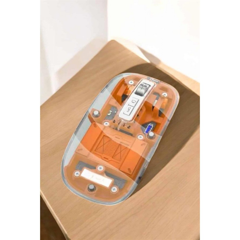 Mouse Fare Kablosuz Mouse Fare Şarjlı Bluetooth Sessiz 5 Tuşlu Şeffaf