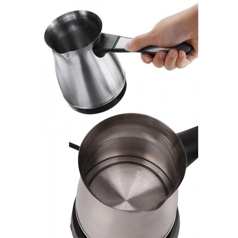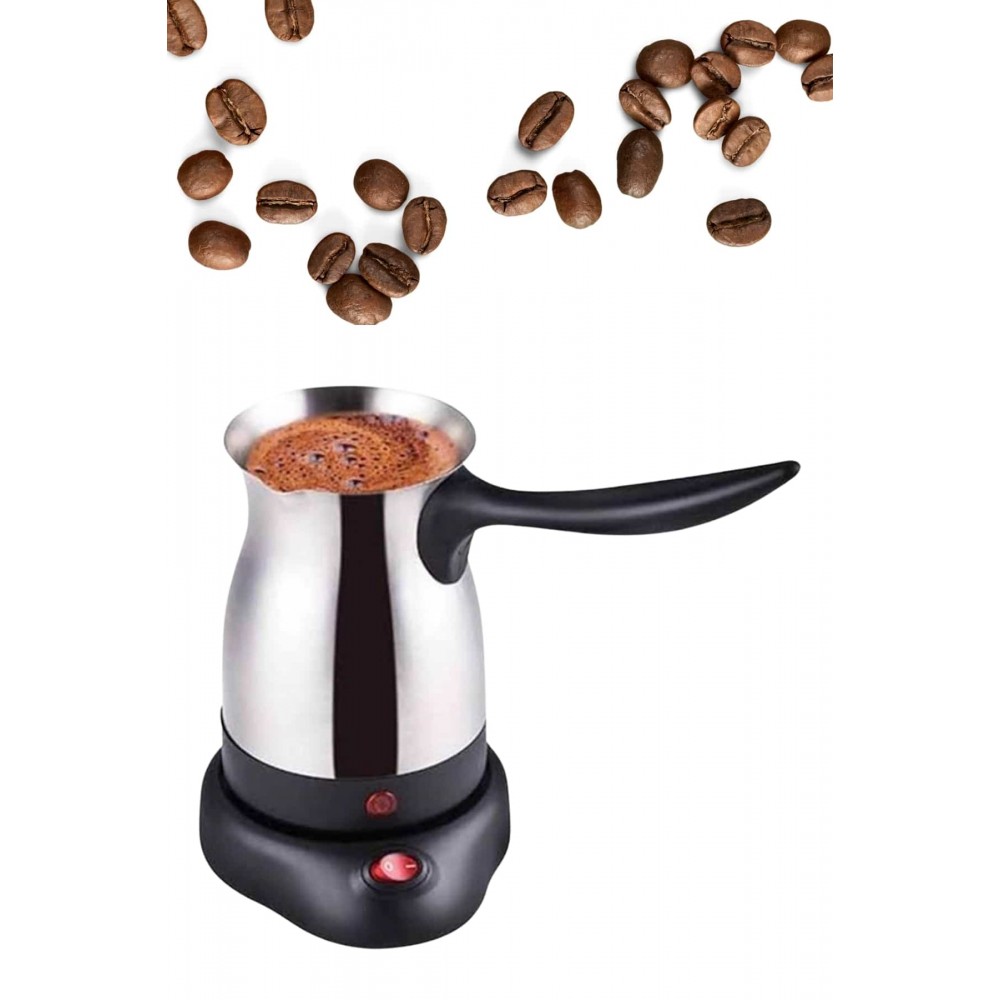 Yüksek performansı ve şık tasarımıyla dikkat çeken bu elektrikli cezve, 800 watt gücü ile mükemmel Türk kahvesi pişirir. 360 ml kapasitesi ile 6 fincana kadar kahve hazırlama imkanı sunar, böylece kalabalık misafirlerinize kolayca lezzetli kahveler ikram edebilirsiniz. Gizli rezistans teknolojisi sayesinde daha hızlı ısınma sağlarken, güvenli kullanım sunar ve temizlik açısından büyük kolaylık sağlar.360 derece dönebilir kablosuz tabanı, kullanım sırasında rahatlık ve esneklik sağlar. Paslanmaz çelikten üretilmiş olan cezve, dayanıklı ve uzun ömürlüdür, aynı zamanda şık bir görünüm sunar. Kolayca temizlenebilen tasarımı, hijyenik bir kullanım sağlar ve her seferinde taze kahve hazırlamanızı mümkün kılar.Kırmızı güç düğmesi ile açma ve kapama işlemleri kolayca yapılabilir. ısınmayan ve ergonomik tasarıma sahip kulpu ise güvenli bir kullanım sağlar. Paslanmaz çelik gövde, hem dayanıklılığı hem de modern görünümüyle mutfağınıza zarif bir dokunuş katar.Bu elektrikli cezve, mükemmel kahveler hazırlamak isteyenler için mükemmel bir seçenek olup, hem işlevsel hem de estetik açıdan mutfağınıza modern bir dokunuş ekler. 6 fincana kadar kahve hazırlayabilmesi ile kalabalık misafirler için de ideal bir tercihtir.