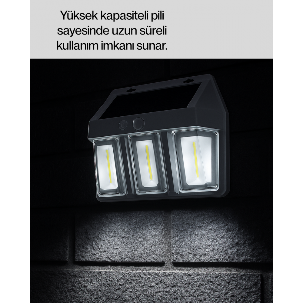 3 in 1 Solar Duvar Lambası – IP65 Su Geçirmez Hareket Sensörlü